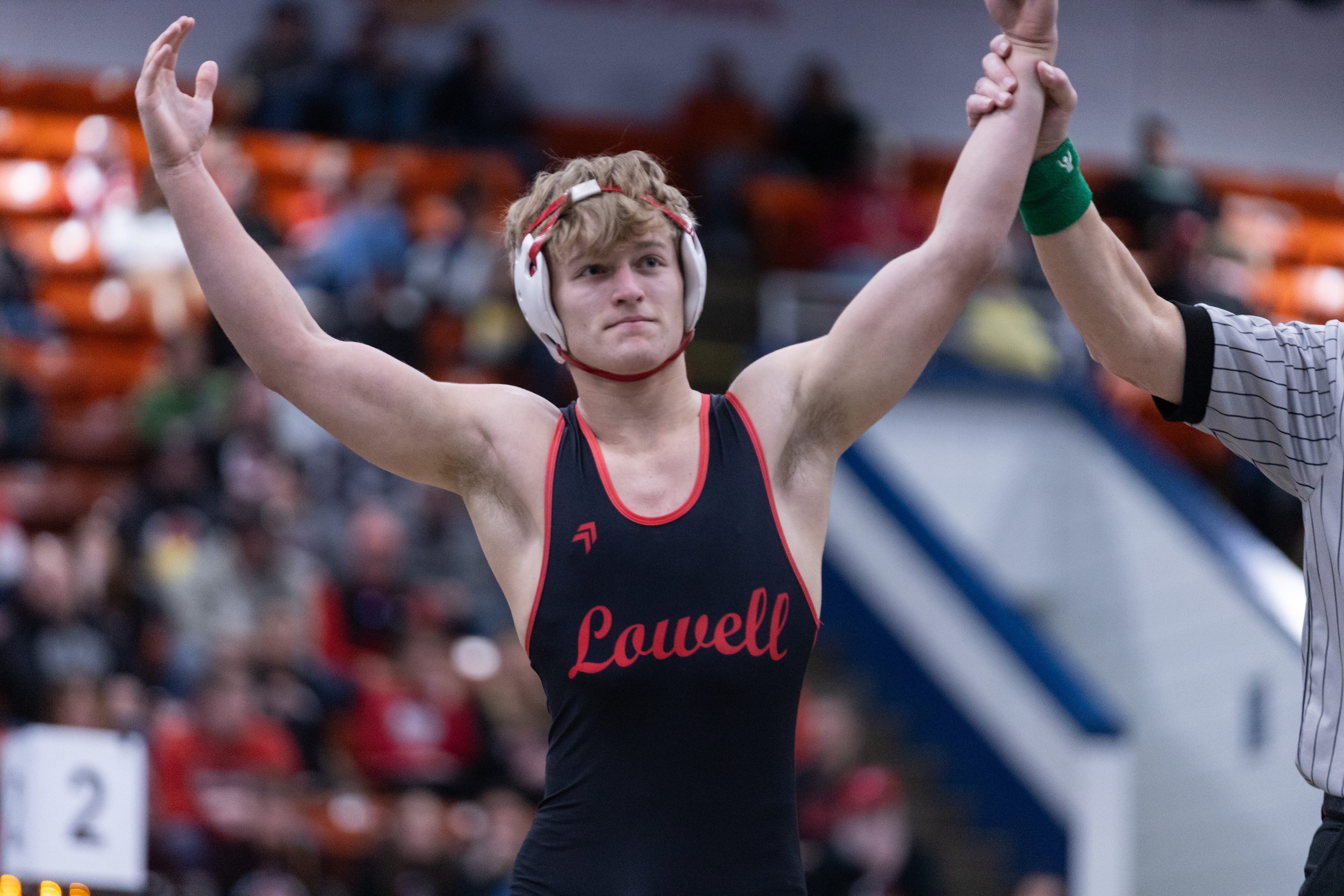 McFarland followed with a 13-1 major decision at 215. Meeuwsen won 10-7 at heavyweight. That match by Meeuwsen had coaches ecstatic for Meeuwsen and is a boost of confidence heading into individual state next weekend for the Lowell sophomore. After a loss at 106, the only loss of the dual, Lowell controlled nearly every remaining match.