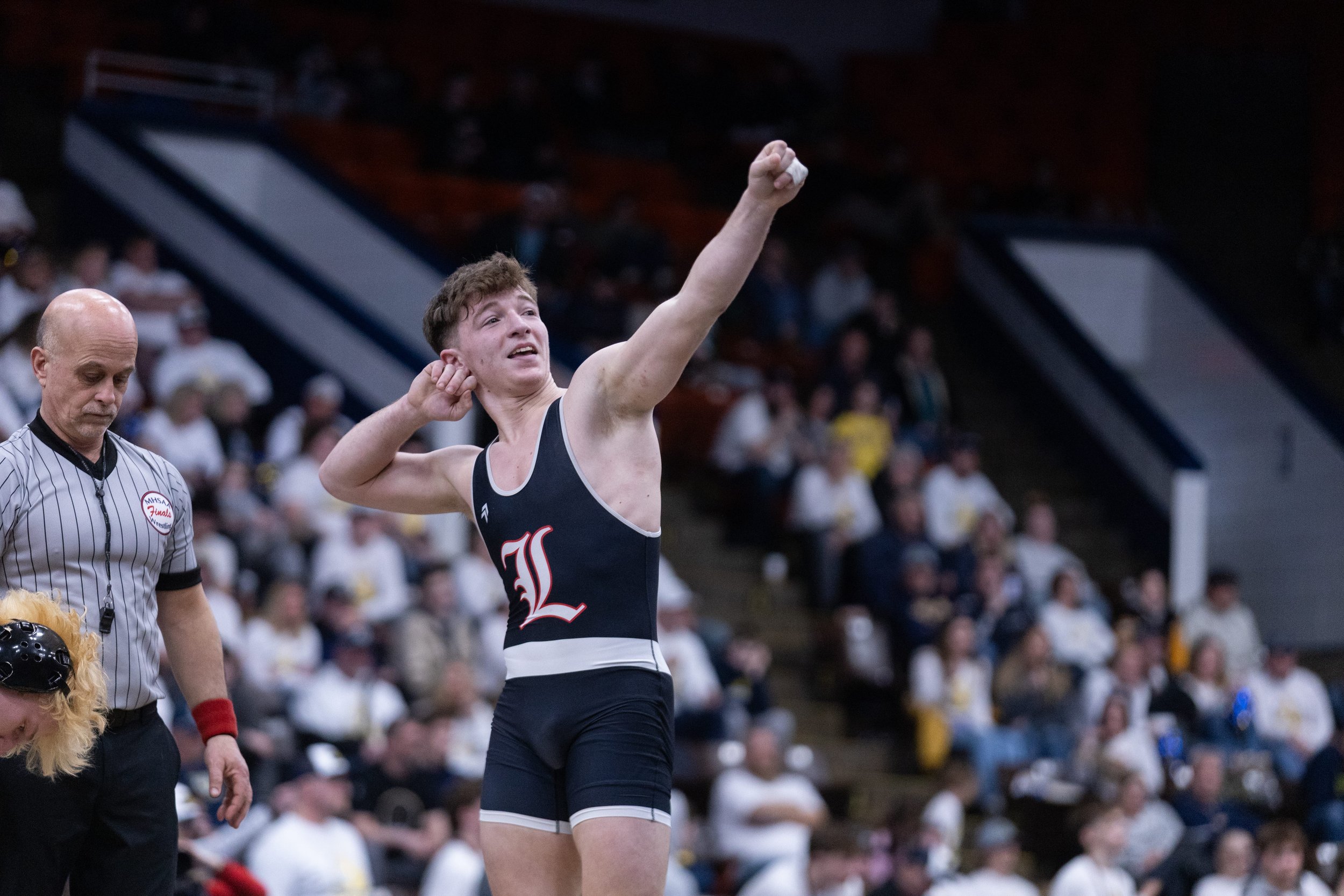 The championship dual unfolded in similar fashion against the upset-minded 6-seed Eaton Rapids. It was a 2015 state championship rematch and it’s fair to say, a team Lowell wrestlers from long ago may still remember all too well. It was Eaton Rapids that beat Lowell in the 1999 team state final, just seven months after longtime Coach Gary Rivers’ death. Of course, the Greyhounds are a well respected program and wrestled as well as they could’ve given the daunting task in front of them.