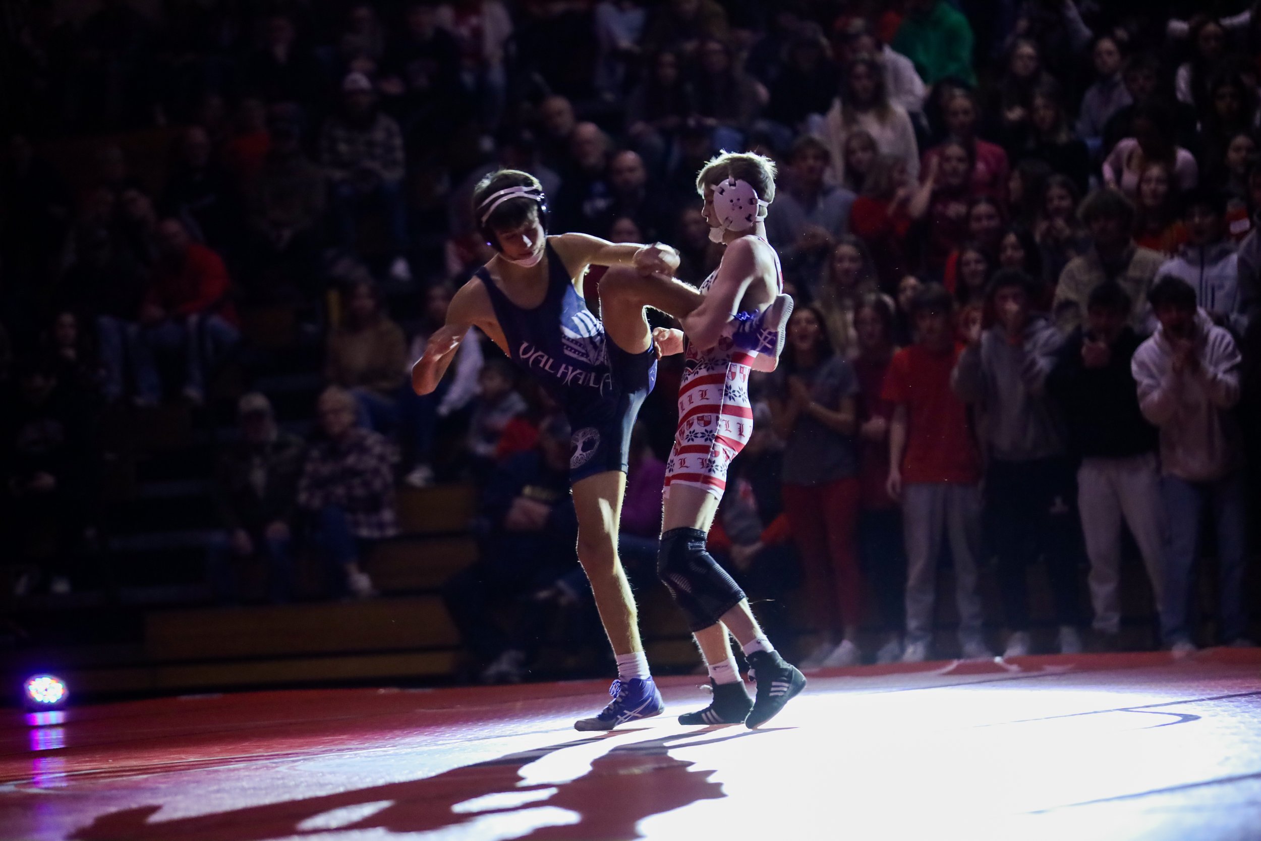 Eleanor Osmar took on the most challenging photography environment in high school sports, the dark dual assembly.